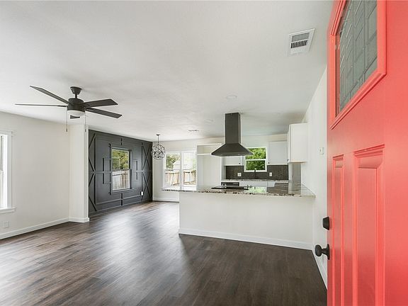 This beautifully remodeled 3-bed, 2-bath home is ready for new tenants! Enjoy a modern open floor plan with stylish upgrades throughout. The kitchen features high-end granite countertops, sleek black appliances, a refrigerator, and a designer accent wall that adds the perfect touch of character.
