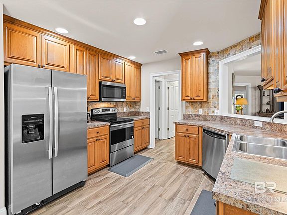 GREAT LOCATION & NO HOA! This beautifully maintained home, built by Mike McConnell, is so close to everything Foley has to offer. The charming 3-bedroom, 2-bath split floor plan offers comfort and convenience with recent updates, including a new roof (2024), new water heater (2023) and HVAC (2022).Inside, you’ll find smooth ceilings throughout, ceramic tile flooring in the main living areas, and carpet in the bedrooms. The spacious great room features a cozy electric fireplace and opens to the dining area, creating a perfect flow for everyday living and entertaining. The kitchen includes a breakfast nook, stainless steel appliances, stained cabinetry, pantry, and tile backsplash.The primary suite is generously sized and boasts a bathroom with double sinks, a separate garden tub and shower, a private water closet, and a walk-in closet. A laundry room with storage cabinetry connects to the two-car garage, which also has additional built-in storage.Step outside to enjoy the open back patio, fenced backyard, and 9x12 storage shed. Just minutes to shopping, schools and the BEACH! All information is deemed reliable but not guaranteed. Buyer or buyer’s agent to verify. Buyer to verify all information during due diligence.