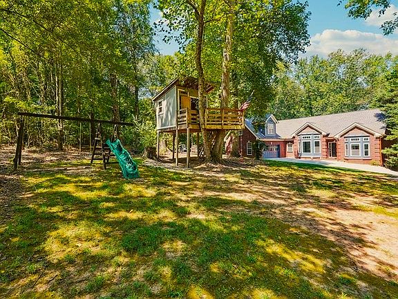 The outdoor entertainment areas feature a treehouse and a firepit area for gatherings and smores. The property is convenient to major highways, interstates, and shopping.