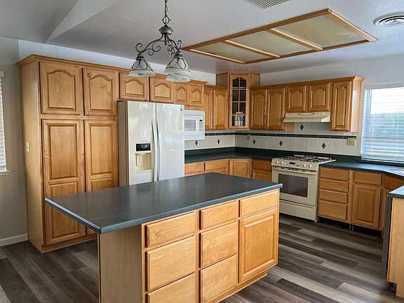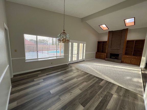 -3bd, 2ba 1913 sq. ft. home with POOL! Close to front gate. -Kitchen has island, built in microwave, double wall oven and open to family room. -Both the living room and family room have gas fireplaces. -Dinning room open to living room. -Living room has a huge brick fireplace and French doors leading to fireplace. -There's carpet in living room, and three bedrooms. -Primary bedroom has French doors to patio, skylights, walk in closet and en suite. -Primary bathroom, has stand alone shower. Separate vanity located just outside the bathroom entrance. -Guest bathroom has tub and toilet, separate from vanity, which is also located just outside the guest bathroom. -Indoor laundry just off of the garage, electric washer/dryer hook-ups -Evaporative cooling and forced air heating. -Refrigerator, and built in microwave provided. The fridge is not warrantied. -Tenants responsible for landscaping. POOL SERVICE PAID BY OWNERS!