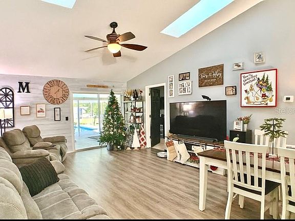 Screen-enclosed inground poolBright and functional layoutSkylights brighten the interior