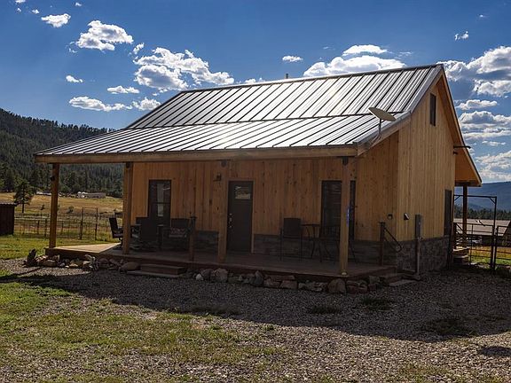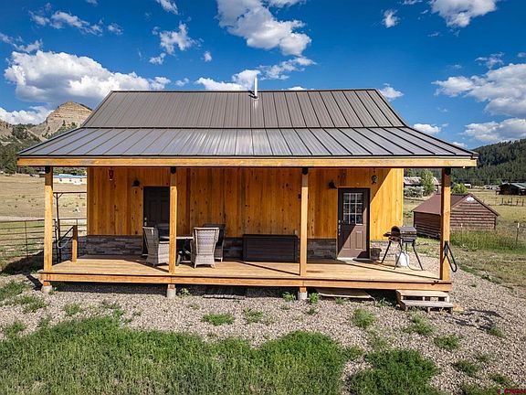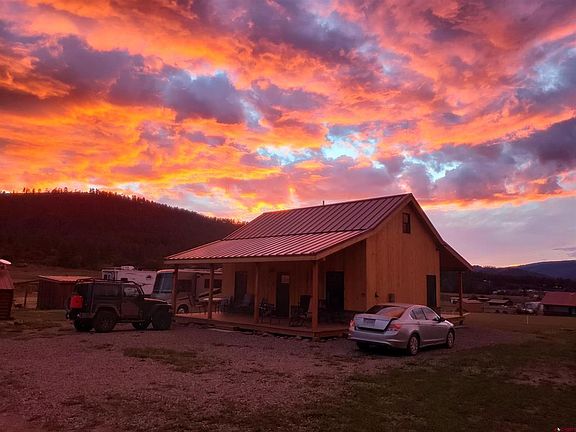 This is quite possibly the best built cabin in all of Pagosa Springs! With spray foam and one inch foam board you are doubly covered and energy efficient which makes it a great lock and leave cabin in the winter! The in floor radiant heating will keep you toasty warm on those really cold winter days! The metal roof is an upgraded standing seam roof! The tall crawlspace is great for storage and would even make an amazing wine cellar! There is an abundance of beautiful blue pine on the exterior and interior of this home! Spend your morning on the front covered deck watching the sun come up and then spend your evening on the back covered deck for spectacular sunsets! The kitchen has granite counters and new appliances! The primary bedroom on the main level has a door that goes out to the deck. It would be a great spot to add a hot tub! There is a full-size washer and dryer in the walk-in primary bedroom closet! If you head up the pull-down ladder you will have a bonus living area that already has a bed in it that conveys and space for an office, craft room or playroom! Outside this amazing cabin you will find two RV hook-ups! One has a 50amp and the other a 30amp and both connect to the septic system! There is a 2000-gallon concrete cistern that is tied into the house. There is a covered RV, boat or vehicle storage on the property! There are also many outbuildings, one is a workshop/storage area, one houses the filtration system for the well, another has a refrigerator and space for a bar, and others could be used for horse turnouts. This property borders green space and is close to a natural spring where you can watch animals like deer and elk come to drink! One of the most incredible things about the location of this property is that is a short walk to a brand-new playground, covered ramada, a basketball court and two brand new pickleball courts! Homeowner's insurance is a breeze because there are no trees on the property, and you won't have to spend your spare time raking pine needles and picking up pinecones! 360 views and a close of view of Broke Off Mountain are there for you to enjoy! There isn't a HOA in this subdivision. The 5G cell service is a much-added bonus! There is just so much to see here! Additional 1.07 adjoining acreage available for a separate price. Schedule your showing today! Some photos of this listing may include virtually staged amenities, furniture or fixtures.