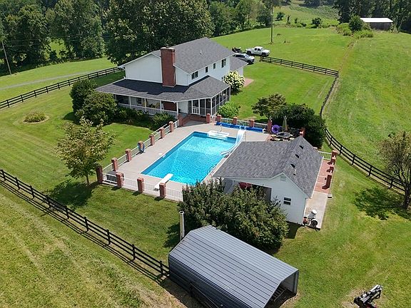 Welcome to your dream retreat in the heart of Appalachia! This spacious, meticulously maintained two-story home sits atop a stunning vista, offering panoramic views that words simply can't describe. Nestled on 78 unrestricted acres of prime farm and forest land, this property delivers a rare blend of natural beauty, privacy, and modern comfort. The approximately 12 acres of cleared farmland with working barn is ready to make your mini-farming or homesteading dreams a reality. The farmable acreage can be readily expanded, as well. The mature forests on the more sloping areas of the property serve as a wildlife refuge and offer the potential for valuable timber. Step onto the deep wraparound porch and soak in the breathtaking scenery that surrounds you. Inside, you'll find a spacious layout designed for both everyday living and entertaining. The large kitchen flows seamlessly into a generous family room—perfect for gatherings—while the formal dining room offers an elegant space for hosting guests. With four spacious bedrooms and three full baths, this spacious home is perfect for large families or for housing overnight guests. An upstairs bonus space, currently used as a sewing room, contains its own closet, so it could easily be converted to an additional bedroom, an ideal nursery, or a charming library overlooking the gorgeous mountain views. Out back, your private oasis awaits. Enjoy summer days in the beautifully maintained in-ground pool, relax on the expansive patio, have a meal in the breezy screened porch, or take advantage of the pool house complete with a half bath for added convenience. Whether you're sipping coffee on the porch, enjoying a swim with the mountains as your backdrop, or exploring your very own 78 acres of rolling land, this home is the peaceful escape you've been waiting for. Don't miss your chance to own one of the region's most stunning properties—schedule your private showing today!