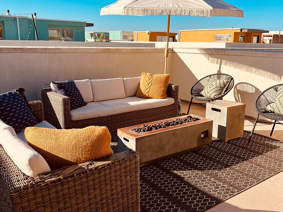 Expansive rooftop deckOpen and inviting layoutEnjoying the sunset viewsTesla charger home