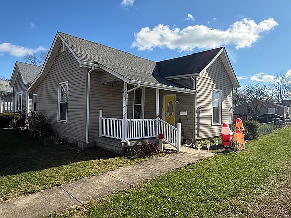Spacious home w/ large rooms located on a corner lot. 1488sf, 3 bedroom/1 full bath. Huge family & living room, eat in kitchen w/ ample cabinet & countertop space - plenty of room for center island and/or dining table. Hardwood flooring, vinyl windows, central heat/air, steps lead down to small basement that is great for storage. Large bathroom w/ double vanity, tub/shower combo & separate laundry area. Detached garage, deck, fenced area & covered front porch.