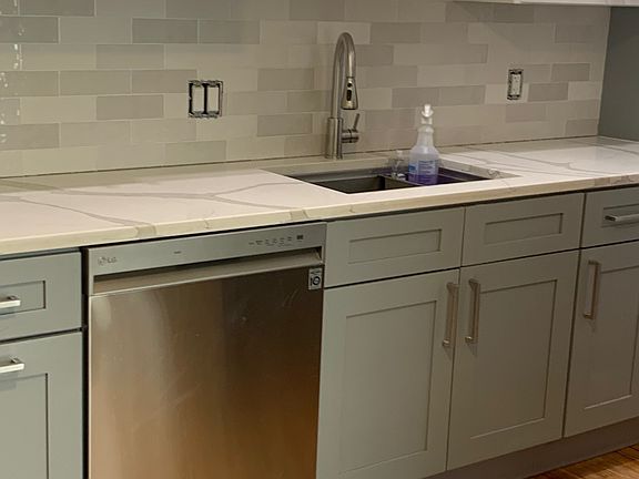 Update eat-in kitchenNew countertopsStainless steel appliancesHardwood floorNew vanity and countertop