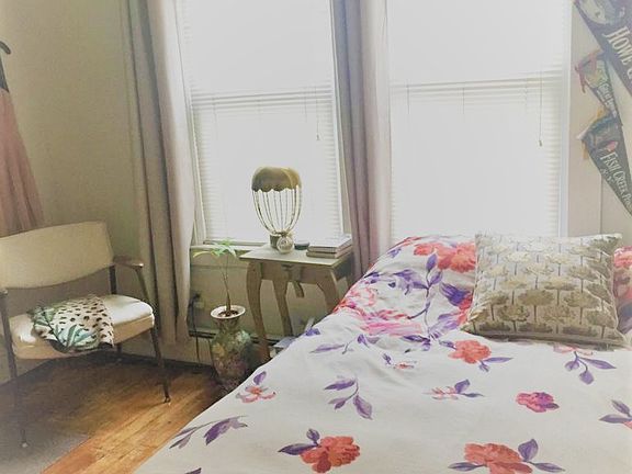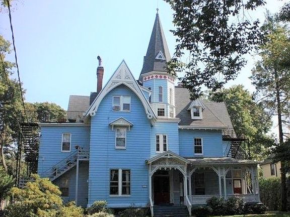 The unique steep roof, gingerbread carvings, and finely scaled gable ornament epitomize the Gothic Revival style. One large room with full kitchen, dining & living area and ornate high ceiling; separate bedroom, and a bonus study/oversized entryway. Full bath. Separate, private front and back entrances. This apartment is on the Yale shuttle route and a two-minute walk to both Science Hill and SOM. Hardwood floors, bookshelves galore. House is quiet, set back from street. The expansive lawn sports huge beech trees that are more than a century old. More: