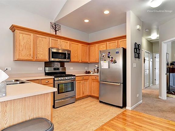 MOVE IN READY! Gorgeous 2+bedroom, 3 full bath raised ranch townhouse. Vaulted ceilings, hardwood floors with finished look out basement that can be a bedroom suite, playroom or extra living room. This open floor plan with neutral decor is ready for you to move your family right in. Enjoy the convenience of being close to shopping and restaurants. Close to 38, 47, 88 and the Metra.