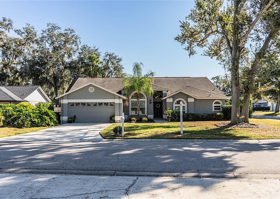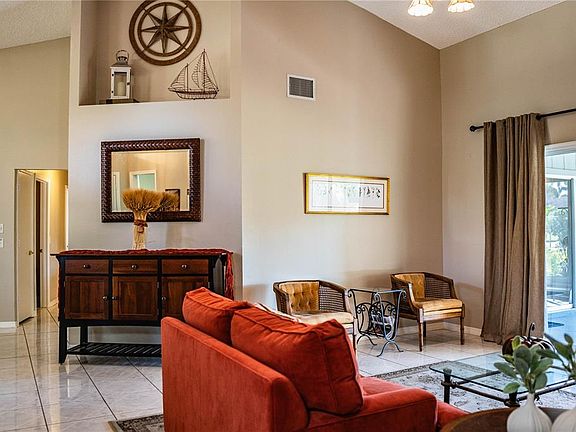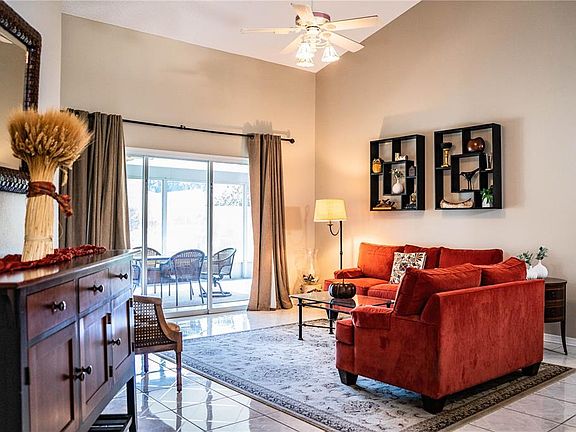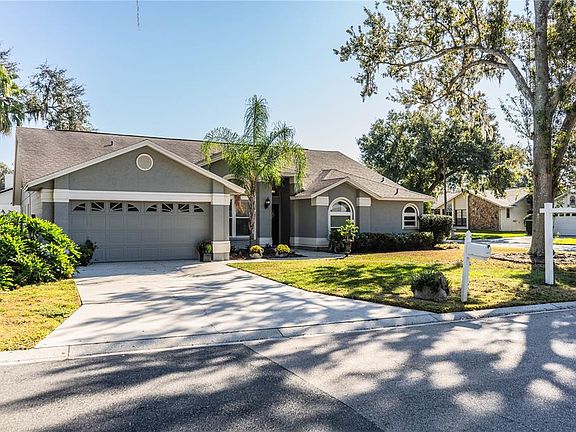 Welcome to Christina Oaks! This spacious 4-bedroom, 2-bath home sits on a lush corner lot and offers a smart split floor plan with a flexible extra room—perfect for a nursery, home office, or gym. The updated kitchen features soft-close cabinets, solid-surface counters, stainless steel appliances, and a cozy eat-in area with a coffee/wine bar, all overlooking a large family room with a wood-burning fireplace. Enjoy a separate dining room, a formal living room with sliders, and a huge screened lanai ideal for relaxing Florida evenings. The master suite includes double walk-in closets, lanai access, and a spa-like bath with dual sinks, granite counters, soaking tub, and walk-in shower. Additional bedrooms are privately tucked away with their own shared bath. Recent updates include a NEW A/C (2025), newer windows, updated bedroom flooring, and an 8-year-old roof with tie-downs. The community features a peaceful pond, gazebo, and charming walkways—all in a sought-after school zone. All listing information is deemed accurate, but the Buyer and Buyer's Agent shall verify all information.
