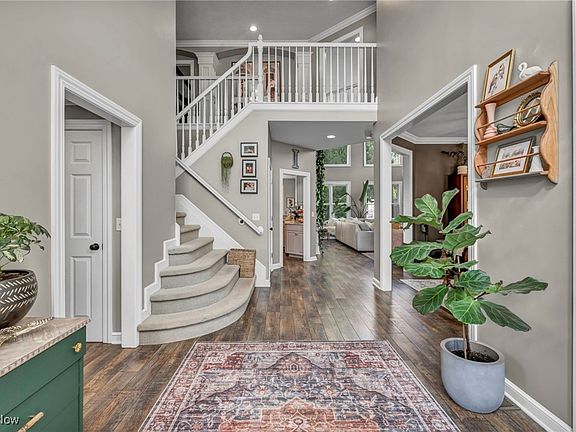 Welcome to this unparalleled elegance of a home in the heart of Medina in the grand Highland Meadows a subdivision of Fox Meadows. This stunning luxurious residence seamlessly combines timeless craftsmanship with modern sophistication, offering over 4000+ sq ft of refined living space on a meticulously landscaped .50 acre lot with professional Turf grass and a professional sprinkler system & Exterior Lighting. Step through the grand entryway into soaring ceilings and sun-drenched interiors, where every detail has been thoughtfully curated. On the main level, you have what could be a 5th bedroom with a closet and bathroom, a grand living room, dining room, sitting room and a gourmet kitchen! This kitchen is a chef’s dream, featuring top-of-the-line appliances, custom cabinetry with soft-close drawers, and a spacious extended countertop with barstool seating, perfect for entertaining. Upstairs you can retreat to the sumptuous primary suite, complete with a large primary bathroom, dual vanities, a soaking tub, and an expansive walk-in closet. Additional bedrooms are generously sized with ample closet space and close proximity to the bathroom providing comfort and privacy for family and guests. The home’s lower level offers a fully finished basement currently being used as a playroom. Step outside to freshy manicured backyard featuring a stunning deck, outdoor yard space, shed and a fire pit, perfect for summer soirées or tranquil relaxation.
