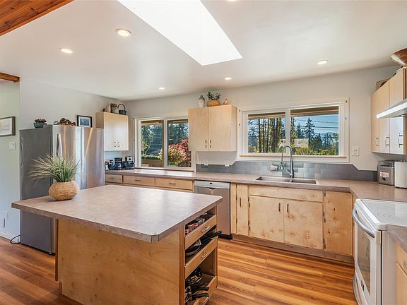 Bright and open, this Beaver Creek home sits on a scenic one-acre lot with mountain views and a flexible two-bedroom in-law suite with its own entrance. The heart of the home features open living, dining, and kitchen spaces with a rustic exposed beam and skylights that bring in natural light. Upstairs, a high-efficiency woodstove warms the dining area, which opens to a large 24’x20’ deck and covered gazebo. The primary bedroom overlooks the private backyard, joined by two more bedrooms, a full bath, and laundry. The suite below mirrors the main layout with open living areas, full kitchen, bath, laundry, and a separate electrical panel. It’s ideal for guests, rental income, or multi-generational living. A workshop connects indoor and outdoor workspaces, while a massive Quonset provides covered storage for an RV, boat, or equipment. There’s ample parking, 200 amp service, and when you need to head out, all the conveniences of Port Alberni are only a 10 minute drive away.