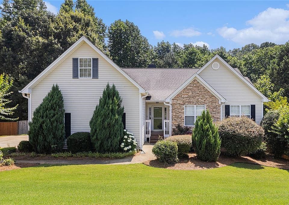 Spacious Ranch with Upgrades & Basement Suite – Flowery Branch Gem! Welcome to this Certified ranch-style home tucked away in a quiet cul-de-sac in the Compass Point Neighborhood of Hall County. House has been Inspected, HVAC serviced, Septic serviced, and comes with a one year renewable Home Warranty. This property offers privacy, space, and flexibility with room to grow and customize. Large yard with mature plantings and fruit trees in the front. Enjoy a fenced backyard, upper deck, and a covered lower patio backing up to serene woods—privately owned by the Compass Pointe neighborhood for several hundred feet. That means no one can build behind you, offering lasting peace and privacy. Inside, you’ll find real hardwood floors throughout the main level, plenty of windows and sunlight. A stunning double-sided stone fireplace creates flexible options for the living room under a vaulted ceiling. A refreshed kitchen features granite countertops, a new backsplash, and artisan finished cabinets with plenty of space to gather. An adjacent dining room space rounds out the main level’s great room. Granite countertops add a touch of elegance to the updated bathrooms along with new tile in the bathrooms, showers , and laundry room. Double sinks, separate shower and soaking tub, with a water closet found in the on suite and large walk closet make for a wonderful primary bedroom on the main level. Upstairs is a 270 sq ft energy-efficient foam insulation unfinished, bonus room over the garage—perfect for a future, private bedroom, home office, or flex space. The daylight basement is a standout: it includes a full second kitchen with cooktop, vent hood, microwave, sink, breakfast bar, and room for a full-size refrigerator with custom cabinets. This kitchen looks over a game room with a Pool Table that flows into a Home Theater space; with an acoustically transparent screen (room for speakers behind it) and fully wired for your surround sound system and projector. An exterior door leads out to the covered deck in the rear yard for indoor and outdoor entertainment. Plus, there’s a bonus room with closet and an attached full bath. The rest of the basement is a large (650+sq ft) unfinished space with stud walls for extra rooms: a workshop, home office, anything you want. And a second exterior door to the side yard. Located in an established neighborhood you’ll enjoy easy access to Lake Lanier, Lake Lanier Islands, Chateau Elan, the Mall of Georgia, and several nearby golf courses. Or just stay near home and spend time at the neighborhood pool and play area. This home offers the perfect combination of privacy, upgrades, space, and location, ready for you to move in now and make it your own.