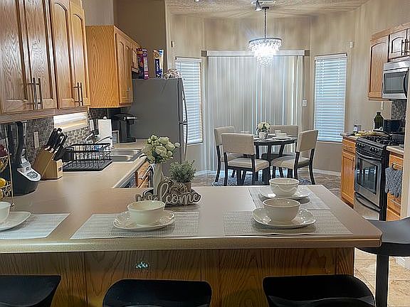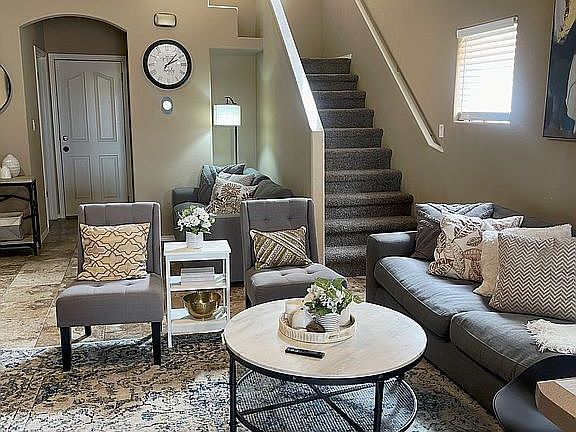 Move-in ready 4br/2.5 ba home in NW Albuquerque Near Rio Rancho & Intel. Furniture available with home. Open floor plan with tile flooring downstairs, updated bath, and modern kitchen with stainless appliances and ample counter space. Primary suite on main floor with double sinks and large closet. Half bath for guests plus 3 bedrooms and full bath upstairs. Features include refrigerated air, second-floor laundry, 2-car garage, and spacious backyard for entertaining, gardening, or play. Conveniently located near schools, parks, and shopping. Tenants in home. Do not disturb.