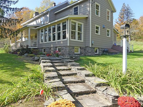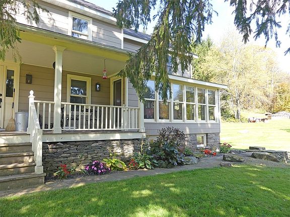 CLASSIC CIRCA 1926 FARMHOUSE has great set-back from the road. The front porch overlooks a large pond. It features a center staircase, fir floors and 4-panel doors with original hardware. Additions to the home include a beautiful fireplace of stone from the Alcove Quarry, a sunroom with vaulted ceiling, custom cabinets and Jotul woodburning stove on stone hearth. The spacious country kitchen with center island, extensive cabinets and a "morning room" was added in 2010. And, there is an expanded master suite, a sewing/craft room and a large workshop. Hardwood floors throughout are cherry, white oak, maple and fir.