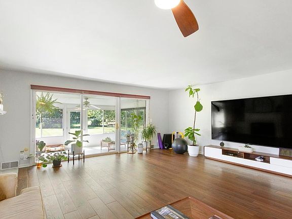 Large recreation roomNatural lightWrap-around corian countertopsHandsome built-in bookcasesSeveral closetsMore storageDurable new flooring