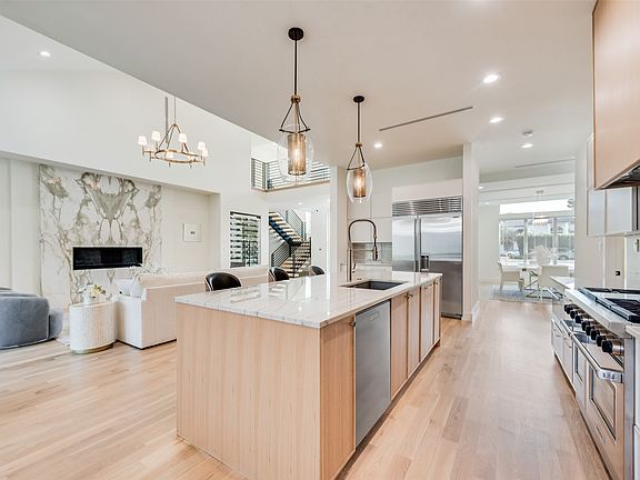 Built-in grillPremium wolf appliancesWhite oak hardwood floorsGlass-enclosed wine displayCovered patioDramatic floating staircaseOpen layout