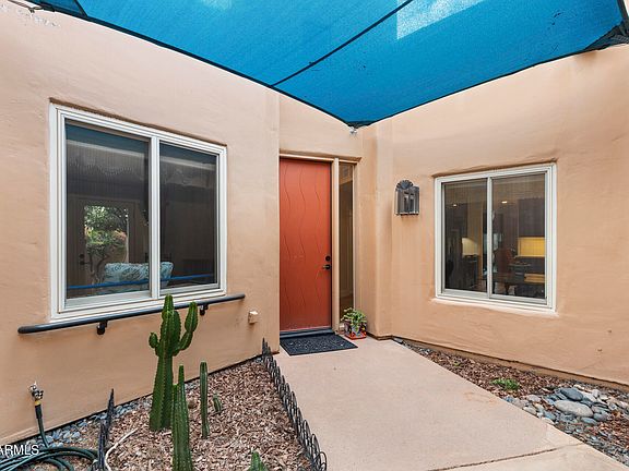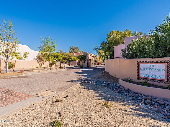Santa Fe style meets modern craft in The Cottonwoods - an Anozira built gated enclave designed by noted architect Adolf deRoy-Mark. Inside, a full designer remodel pairs real wood flooring, American clay wall finishes with an airy, open concept that places bedrooms at opposite ends for privacy. The beamed ceilings and clerestory windows bring drama and soft natural light while the kitchen and baths feature cohesive, semi custom, acrylic cabinetry, quartz countertops and high quality finishes. Outside, enjoy lush community grounds with winding streams/ponds, mature trees, pool/spa, tennis, and a reservable tea house - rare resort style amenities in South Tempe. Architecturally distinctive, historically significant and move in ready. This is Cottonwoods living at its best
