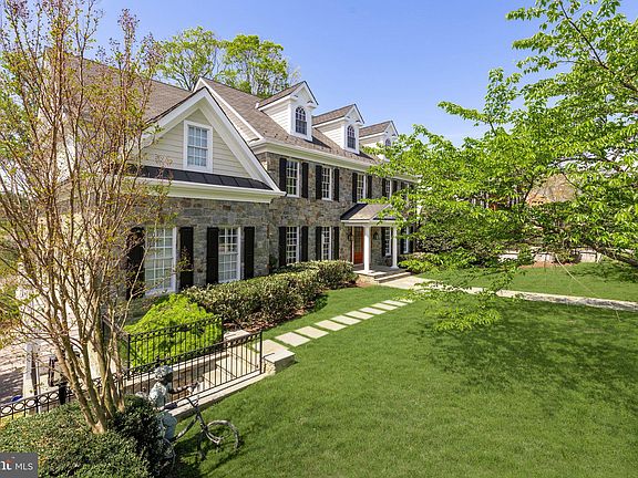 A stunning grand fieldstone colonial in a one-of-a-kind Kenwood location, 6412 Garnett Drive is a peerless example of exacting craftsmanship and luxury living. Belonging to arguably the most sought-after enclave in the Capital Region, famous for its whimsical annual display of cherry blossoms, this exquisitely renovated estate is one of only 4 homes in its rarified air to relish in sweeping, unbroken golf course views of the adjacent Kenwood Country Club. Occupying a premier lot encompassing a third of an acre, the manicured front lawn is bisected by a central flagstone walkway. Introduced by a portico and elegant glass and mahogany door, the deep foyer serves as a dignified reception area, introducing a generous 7,730 square foot floor plan equally unflappable accommodating lavish receptions as it does casual living. Formal living and dining rooms flank the entryway in a timeless center hall layout, enabling seamless entertaining flow between the two embassy-sized spaces. Central to the main level is the breathtaking great room. A soaring double-height space, a wall of Palladian windows sits above French doors to the rear deck, capturing every ounce of the verdant expanse beyond, as well as radiant sunsets that bathe the void in a warm amber glow. Within the formal wing is a stately library, surrounded by rich custom mahogany built-ins and warmed by a roaring fireplace set against panoramic views. Informal areas adhere to the most contemporary standards of true open concept living. The aspirational chef’s kitchen features a 48” Wolf commercial range, stand-alone Sub Zero refrigerator and freezer, Wolf wall oven, and 2 Miele dishwashers embedded within furniture-grade cabinets, surrounding an oversized center island with integrated seating. The butler’s pantry features upper glass cabinetry and a Sub Zero under counter refrigerator. The adjacent breakfast area is expansive and opens onto the deck to enable an indoor/outdoor connection. A comprehensive mudroom area with direct side access as well as a practical, tucked away bedroom with ensuite bath completes the main level. The broad upper level gallery overlooks the great room below and the views beyond in a spectacular fashion. Occupying an entire wing of the home, the lavish primary suite boasts a roaring fireplace and wall of rear-facing windows. A vestibule introduces the smaller of two walk-in closets and leads into the primary natural stone bath – a spa-inspired space with dual vanities, Kohler Castia plumbing fixtures, walk-in shower, jetted corner tub, heated floors and water closet. It introduces the bedroom-sized second walk-in closet with humidity control. Both primary closets feature custom built-in organizers. A princess suite and two additional bedrooms sharing a Jack-and-Jill bath and an expansive laundry room complete the upper level. A large sitting room and bedroom suite are found on the top level, featuring the roofline’s three endearing dormers and ideal for a private home office, yoga studio, or recreation space. The extra wide three-and-a-half car garage has an L-shaped workbench and upper cabinetry and accesses the home via the lower level. A second comprehensive mudroom and laundry room area bridges the transition. The central recreation room sits above grade, walking out onto the covered terrace beneath the deck and features a luxury kitchenette with custom cabinetry, wine fridge, under counter fridge and microwave and handsome fireplace. Rich in amenities, the lower level boasts a fitness room, tiered home cinema, and seventh bedroom with ensuite bathroom and walk-in-closet.An artful combination of landscaping and hardscaping cascades down from the rear deck, culminating in a custom bridge that spans over the creek and leads to the Kenwood Club. Truly exceptional to the square inch, 6412 Garnett Drive is undoubtedly one of Kenwood’s finest showcases and a one-of-a-kind opportunity.