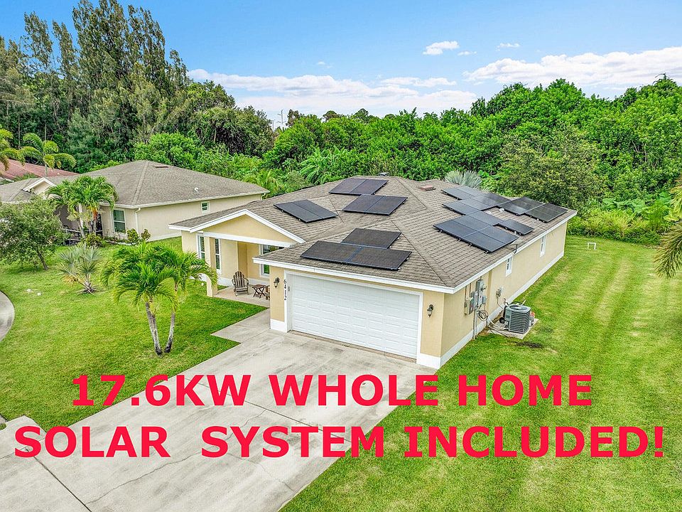 WOW!! FREE POWER!! NE PSL. SAVE $Thousands/Year With NO Power Company (FPL) Usage!! 2017-Built CBS Nearly 1900sf 3+Den/2/2 w/ 2022 EXTENSIVE 17.6KW WHOLE HOUSE SOLAR SYSTEM ($72K System! Remaining Balance Will Be Paid Off By Seller!) Located on Quiet Cul-De-Sac. Granite Kitchen w/ Hi-End Maple Cabinets. Large Family Rm. Den/Office Could Be 4th Bdrm. NO NEIGHBORS BEHIND. Elementary 5 Minutes away! Intracoastal 10 Minutes. Roman Tub/Separate Shower And Dual Vanities In Mstr Bath. Covered Patio. Remarkable Value. (Agent Can Provide Utility Bill Showing NO FPL USAGE For Buyer Review.)