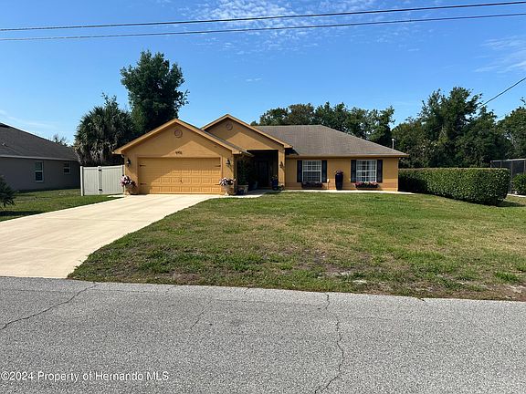 Looking for the perfect quiet neighborhood? You've just found it! Come and see if this Impeccably Maintained four bedroom two bathroom home, located in south central Springhill. Only 45 minutes from Tampa and 20 minutes away from Pine Island, Bayport, Boat launch, and the Weeki Wachee river Kayaking. Only 10 minutes from the sun coast. As you enter this open floor plan, you will notice it's solar tubes that brighten up the whole living area with natural light, lighted, custom cabinets, granite, countertops, stainless steel, deep sink, appliances, and wine cooler. You will appreciate shelving and storage spaces that the kitchen pantry, Ample laundry room offer, as well as the garage parking for two vehicles. Set an a spacious dining room, while having an open view of the entire center of the home. The primary bathroom has been updated, featuring double sinks, a garden tub, separate shower with full walk-in closet, and closed toilet area with large custom cabinet for extra storage. Throughout the home, you will notice tile and laminate flooring. One guest bedroom is currently being used as an office, another as an exercise room all with their own full closet. As if this is not enough, step onto the large lanai, 466 ft.² total, with a 23 x 13 screened, nonslip tiled area for peace and tranquility in a privately fenced area with beautiful, landscaped hedges. Will you hear the gentle water falling from a large water fountain as you enjoy the sound of the song birds that make this backyard their home. at night the landscape lighting and lights inside the fountain will extend this spotlight field. Two discreetly placed storage sheds will provide plenty of storage for a riding mower and tools. The sprinkler and micro irrigation system is Wi-Fi connected and controlled through a smart phone app. The home is also smart wired so whether you choose cable, fiber, optic, streaming, or satellite, it's all pre-wired with a centralized box to distribute it throughout the house . For peace of mind, and ADT home security system is connected and works but not currently monitored, along with a separate wireless security, camera and doorbell system. But the amenities don't end here, so we warmly encourage you to schedule a viewing today!