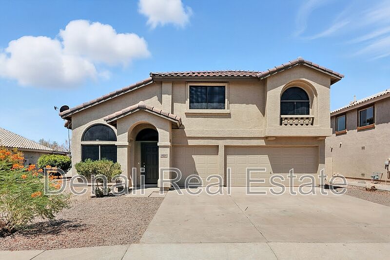No Application Fees! Stunning and newly remodeled 4 bedroom, 2.5 bathroom Glendale home located in the desirable Cobblefield community. This home features new laminate flooring throughout the first floor, soaring vaulted ceilings, two tone neutral paint, upgraded fixtures, window blinds, and abundant natural light. Multiple living spaces include a large front living room with fireplace, a spacious family room, and a formal dining area. The completely remodeled kitchen offers upgraded cabinets, granite countertops, a custom tile backsplash, island with breakfast bar, and stainless steel appliances to be included. All bedrooms are located on the second floor, including the oversized primary suite with a large walk-in closet, dual sink vanity, garden tub, and separate shower. The 3 car garage provides generous parking and storage. The easy-care backyard features a covered patio, synthetic grass area, and no neighbor behind the property for added privacy. Cobblefield is conveniently located near State Farm Stadium, Westgate Entertainment District, Desert Diamond Casino, and Tanger Outlets, offering shopping, dining, and entertainment just minutes away. Close to major roadways, including Loop 101, for quick access throughout the Valley. Property owner is an Arizona licensed real estate broker.