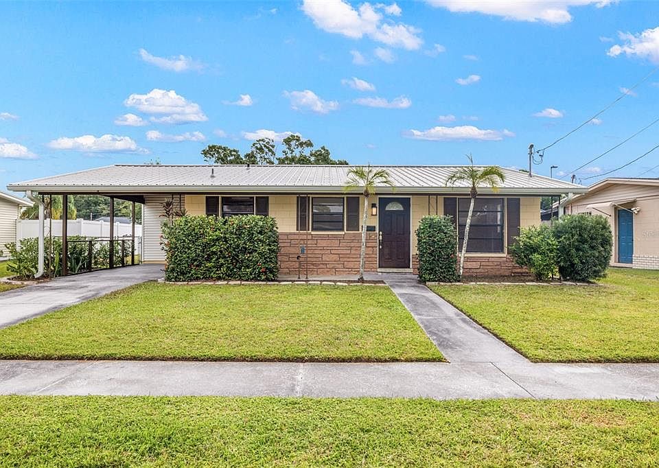 Price Adjustment--Seller Motivated!! DO NOT MISS THIS PROPERTY!! Block construction property with a new metal roof (2024) and new electrical panel with house re-wire (2024). Perfect first home or rental property. The HVAC unit was updated in 2017. Terrazzo and wood floors through this 3 bed, 1 bath, single story home boasts an abundant number of closets for the size of the home. The larger single bathroom has a vinyl walk-in shower. Large fenced back yard perfect for adding a pool or creating the outdoor lifestyle that may be appreciated in Florida. The backyard currently boasts a detached shed with a metal roof perfect for storing the necessary lawn equipment for this property or could become a garden shed. This property has a driveway and attached single carport outside the side door perfect for unloading groceries. At the rear of the carport is an attached storage room that includes laundry with washer and dryer. This property is ready for your personal touches to make this house a home.