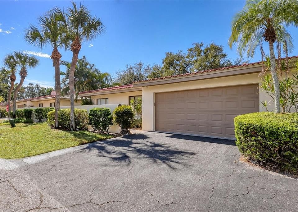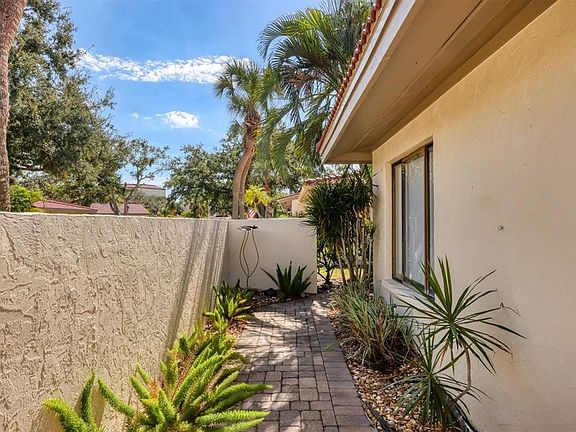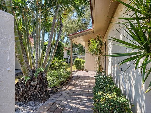 Welcome to your private oasis in the highly desirable community of Wild Oak Bay. This spacious three-bedroom, two-bath villa offers 1,805 square feet of living space, cathedral ceilings in the great room and a two-car garage with a brand new garage door (including garage door opener and exterior keypad), storage cabinets and epoxy floors. The wrap-around private courtyard is ideal for morning coffee, gardening or simply enjoying the Florida lifestyle in peace. Set in a quiet, peaceful neighborhood along Sarasota Bay, Wild Oak Bay is known for its lush landscaping and is ideal for taking relaxing walks. While the community borders the bay, this particular villa is located in an X500 flood zone for added peace of mind. Inside, you'll find a bright, open layout with no carpet, tile floors run throughout. The home is loaded with valuable updates including a new tile roof, and freshly painted exterior. The air conditioning and ductwork were replaced in 2021, the water heater in 2023, the electrical panel in 2020, and the new washer and dryer were installed in 2024. This pet-friendly section of Wild Oak Bay allows two pets, and the HOA covers water, trash, internet/cable, lawn care and perimeter irrigation. The courtyard also has its irrigation system maintained by the homeowner. Community amenities include a pool and proximity to IMG Golf Course and IMG Academy. Just minutes to the Sarasota-Bradenton Airport, beautiful Gulf beaches, shopping, dining and medical services. You won’t find many villas with a wraparound courtyard that gives privacy and enjoyment like this one does, so come see for yourself and fall in love with Wild Oak Bay.
