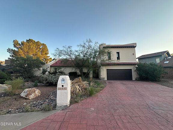 Tucked away on a quiet cul-de-sac in sought-after Chaparral Park neighborhood in West El Paso TX, this custom-built Adobe home offers you over 3,600 sq ft of warmth and character with hand made Saltillo tile throughout the first floor. Featuring 4 bedrooms + office (or 5th bedroom), 4 bathrooms, this Santa Fe-style retreat welcomes you with its cabin-like charm, natural wood accents, and open living spaces. The backyard is an entertainer's dream with panoramic views and a solar heated in-ground pool—perfect for relaxing or hosting gatherings year-round. Upstairs you'll find a private suite with its own living area, wood floors, wet bar, fireplace, and bathroom with exterior access to the pool. Priced at only $435,000— well below market value —this fixer-upper is ready for the right buyer to bring it back to life. Don't miss this rare chance to capture instant equity in one of West El Paso's most desirable communities. Quick-close buyers and investors welcome —opportunities like this don't last long