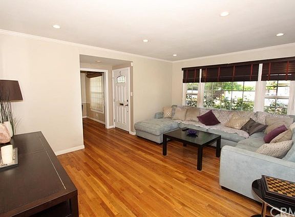 LOCATION LOCATION LOCATION!!! The home shows pride of ownership, very clean and well maintained, large lot with a detached garage, extra parking next to the garage area. Spacious living room with beautiful hardwood floors, crown molding, and new recessed lights. Two bedrooms, one pass-through bedroom with original closet and beautiful french doors accessing a spacious patio, overlooking large backyard. Sewer line just two years old. This is a must see on a desirable tree lined street area. Home is adjacent to Encino, near Lake Balboa, walking distance from dog park, schools and plenty of shops nearby.