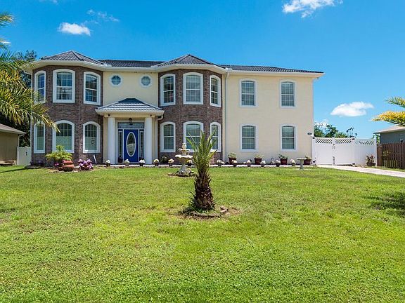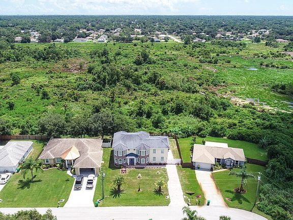 Schedule your appointment with Owners for a showing. Magnificent multi-generational executive home with 3 1/2 baths - 5 bedrooms, plus a Mother-In Law Suite with kitchenette, and separate Private Entrance! 4,100 square feet with detached 2-car garage in West Port St. John! Home is recessed for privacy; a large front yard with lush palm trees and a water fountain. Stained-glass entrance door with double side panels and transom opens to an elegant foyer with a grand staircase and gorgeous tile flooring. Off the entry is a formal dining room, complete with large picture windows that fill the space with gorgeous natural light. An inviting family room features double doors out to the back patio, ideal for indoor/outdoor living. Beautiful gourmet kitchen with updated wood cabinetry, granite countertops, center island with prep sink, modern stainless-steel appliances, and a charming dining nook with private yard view. Separate laundry room. The master suite features a gorgeous bedroom with bay window & window seat, a separate office or nursery, 2 hall closets plus a walk-in, a linen closet, and a luxurious in-suite bathroom with dual vanities, separate tile shower, and a relaxing garden tub. Upstairs, all the bedrooms are oversized, each with their own separate closets and study area. The second floor also has an additional full-size study room with double doors, plus an oversized game room. The entertainer's backyard backs a permanent greenbelt and is completely fenced-in with a stone paver patio, perfect for weekend barbecuing. Central A/C. Additional upgrades include: full concrete block both floors- foam insulated; 50-year metal hip roof (double insulated interior); Double-pane hurricane windows throughout. Tile floors and natural light throughout this energy efficient home; low utilities, insurance and taxes. Beautiful quiet neighborhood and walking distance to great schools and park; close to shopping, restaurants, I-95, and The Beachline to Orlando's finest attractions, and world-class beaches. An incredibly special custom designed and built home with so much to offer!