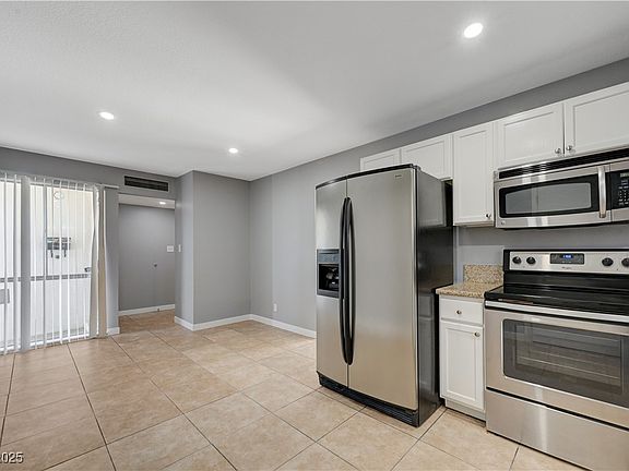 Elegant single-story residence less than a mile from CSN Charleston Campus. This home boasts an open, spacious living area and a modern kitchen featuring stainless steel appliances, granite countertops, and freshly painted cabinetry. Designer tile flooring enhances the main living spaces, with plush carpet in the bedrooms for comfort. Step outside to your private oasis complete with a sparkling pool and an expansive covered deck, ideal for entertaining or relaxing in style. A rare combination of comfort, convenience, and resort-style living this home is a must-see!