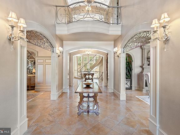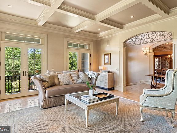 Newly Listed, exceptional luxury estate in the prestigious Kenwood neighborhood. Sited on an elevated private lot, and providing over 11,000 finished square feet across four levels, this custom-built residence provides the elegance and scale of a European manor. Designed by renowned architect Glenn Fong, the home seamlessly blends grandeur with inviting warmth. Interiors led by Galiani Design Group. Boasting 7 bedrooms and 7.5 baths, construction standards are commercial-grade with exquisite materials that will satisfy the most discerning buyer. The exterior features painted brick and stone, a natural slate roof, and oversized copper gutters and downspouts. Inside, you'll find luxurious flooring of limestone, slate, and custom-cut hardwoods, complemented by stunning curved stairways with hand-forged iron balustrades. With ceiling heights exceeding 10 feet, the home is adorned with extensive trim, built-ins, and ceiling details, including barrel and coffered ceilings and intricate plasterwork. Upon arrival, a gated circular drive makes a grand statement. The main level is designed for sophisticated entertaining, featuring a spacious, double-volume entry hall, formal living and dining rooms, a glass conservatory, and both formal and informal powder rooms. An elevator shaft is also in place for added convenience. The family room, adorned with Tuscan beams and custom 12" plank hardwood flooring, features a wood-burning fireplace and French doors leading to an expansive kitchen. The chef's kitchen is equipped with Clive Christian cabinetry, top-of-the-line appliances, and leathered slate counters. Adjacent to the kitchen are a light-filled curved breakfast area, rear staircase, pantry, and main level office. The outdoor space is a haven, featuring a newly installed travertine terrace with a pool, spa, and fire pit, all enclosed by mature plantings and stone walls. The upper level includes a luxurious primary suite and three additional en suite bedrooms. The primary suite offers a private balcony, a sitting room with a wet bar rough-in, spacious walk-in closets, and a spa-like bath complete with dual sinks, water closets, and a jetted tub. The top level has been spectacularly transformed into a penthouse suite, with its own living and dining spaces, a wet bar, separate HVAC, and a bedroom with an en suite bath and oversized walk-in closet, making it ideal for older children, extended family, or guests. The lower level features two additional bedroom suites, a gym, a second kitchen, a massive overflow walk-in closet (with flexibility to serve as a home theater space), cedar storage, and access to an attached two-car garage. An additional attached garage space is located at the end of the private drive. With an unbeatable location providing easy access to the vibrancy of downtown Bethesda, the Capital Crescent Trail, Kenwood Country Club, excellent public and private school options and all of Washington, DC's attractions, this exceptional home is now available at a price below the assessed value. Discover the ultimate in luxury living.