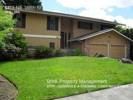 SCHEDULE A SHOWING ONLINE AT: showmojo.com/lh/9d0ce1802c Spacious two level home atop a hill in a residential neighborhood close to the center of Kenmore. Kitchen features a wood floor with upgrades, including new countertops, stainless steel stove top and hood fan. Vaulted living room with large windows and private view, ceiling fans. Dining room with sliders opening onto a wrap around deck. Master bedroom with large closets and 3/4 bath on main level. Two additional bedrooms and a full bath complete the main level. Lower level contains a spacious family room with fireplace and sliders to patio area. Downstairs also includes a 3/4 bath, which doubles as a utility room with a washer and dryer, and a large partially finished storage room adjacent to a two car garage. Two tiered back yard. In the Northshore School District. YEAR BUILT: 1976 SCHOOLS Elementary:Kenmore ; Middle/Jr High:Kenmore ; High: Inglemore APPLIANCES Oven/Range ; Refrigerator ; Dishwasher ; Microwave ; Washer ; Dryer PARKING 2 Car Garage HEATING Gas UTILITIES INCLUDED None LEASE DETAILS 12 Month or greater with approval SECTION 8 ACCEPTED No STANDARD DEPOSIT Our Standard Move in Deposit and Fees include a Refundable Deposit of $1945 plus a non-refundable fee of $450. We may ask for an additional deposit based on income, credit score, or background check results. PET POLICY Pet possible with prior approval and additional deposit (30 lb. max.) Pets must be over 2 years old and under 30lbs No aggressive dog breeds Other restrictions may apply PET DEPOSIT Our Standard Refundable Pet Deposit is $500 per pet. This deposit would be an addition to the standard deposit and refundable subject to property condition on move out. EASY TO APPLY ONLINE! $37 - Per Applicant paid online with a credit card! You can apply here Disposal Fenced Yard Vaulted Ceilings Wash/Dryer