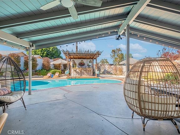 Mid-century modern home centrally located in the Valley. This home features vaulted ceilings with an open floor plan, large beautiful windows, lighter oak wood type vinyl flooring, a cooks kitchen with top of the line stainless appliances, stone quartz countertops, stone quartz topped island with breakfast bar, recessed LED lighting, and shaker cabinets. The living room is bright with natural lighting and a view out to your entertainers backyard with a patio pergola, swimming pool that was replastered in 2023 with a baja shelf, heated outdoor shower, and a bohemian styled bar with built in kegerator that was showcased on TruTV’s hit show Backyard Bar Wars. The home has a separate private laundry room as well as a 775 sq ft. finished garage that is equipped with a mini split air conditioner/ heater, electric vehicle outlet, solar panels, and tons of storage space. Conveniently located near the 101, 405, & Ventura Blvd. Close to the Topanga Mall, The Village, Grocery Stores, Starbucks, and schools.