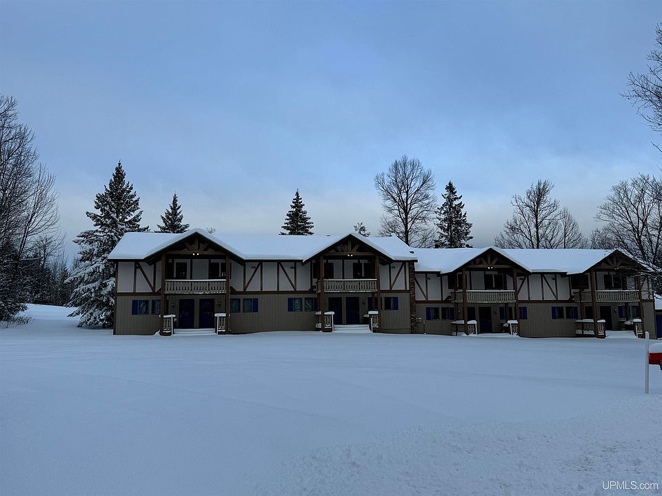 Alpen Villas - 8 side by side units in this 2 story building located just 45 feet from the Flintlock ski trail at Big Powderhorn Mountain Resort. Each of the units has 2 bedrooms and full bath on the main level, with kitchen, dining area, living room with a fireplace (either brick or free standing) and half bath on the upper level. Access to the hillside covered decks is from the slider doors in the living room. The slider doors in the bedroom offer access to the new shared hot tubs and individual ski lockers. Each unit provides access to the basement common area with washers and dryers. Lock-off doors between adjoining units. Selling turnkey. Many recent improvements include: 2 new hot water boilers, basement waterproofing, exterior stain, fascia, new lower decks and stairways. Attached storage unit. Additional lot provides for ample parking space. Great income potential.