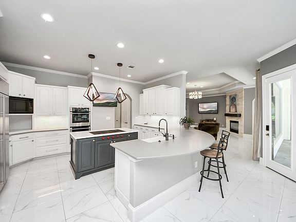 Situated in the prestigious gated community of The Reserve in Riverstone, this stunning smart home features a resort-like pool/spa and modern designer upgrades throughout. With soaring ceilings, exquisite tile work, designer lighting, and a fabulous floor plan, this home is perfect for entertaining. The spacious family room includes a gas log fireplace and views of the patio/pool oasis. The gourmet kitchen boasts high-end design details and top-of-the-line appliances. The primary bedroom offers a luxurious ensuite bath with Carrera marble tile and a soaking tub. With a downstairs guest room, 3 secondary bedrooms, game room, and media room/gym, this home has it all. Zoned to FBISD and close to shopping and restaurants.