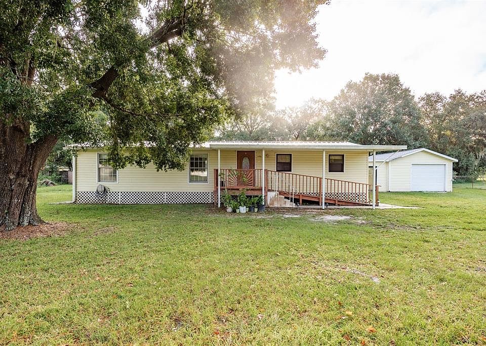 Welcome to this 3-bedroom, 2-bath double-wide manufactured home located in the desirable Angus Valley neighborhood of Wesley Chapel. Situated on over half an acre (.52 acres), this property offers a spacious 1,248 sq. ft. floor plan with a split-bedroom layout for added privacy. The open living and dining area flows into the kitchen, which features solid wood cabinets, stone counters, and a gas stove. Recent updates include a 2022 hot water heater, 2023 dishwasher, 2023 refrigerator, and 2023 oven. The home is equipped with central air, a heat pump, and propane washer/dryer hookups. Enjoy the peace of country-style living with no HOA fees while still being close to shopping, dining, major highways, and top-rated schools. With some finishing touches, this home has fantastic potential for its next owner.