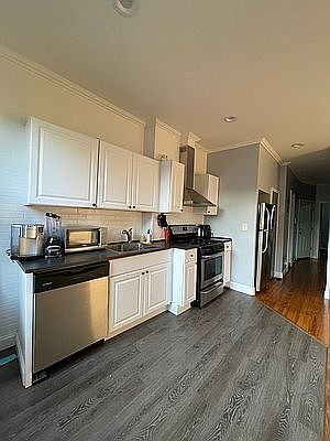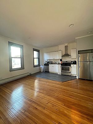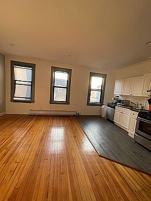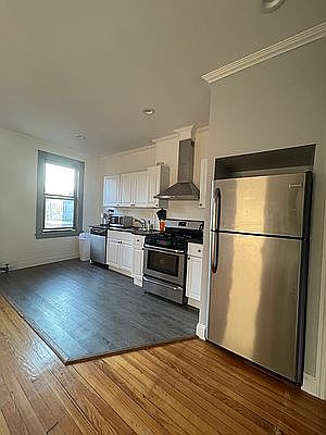 Very large 3 bedroom apartment in Ridgewood. Great for shares or those seeking a lot of space to work and live in. Wonderful work from home possibilities. Two windowed front facing bedrooms facing Fresh Pond Road, each has a separate entrance from the hall, or can be used as a railroad passthrough second bedroom. There is also an interior bedroom with an operational skylight and fan for light and air. A second living room, study, or 4th passthrough bedroom connects the front hall to the two front facing bedrooms. There is a lot of space in this unit. Top floor of a 3 story pre-war brick building with solid construction. Period details, high ceilings, and crown molding. Enormous living room in this apartment. Great natural light. Windowed eat-in-kitchen with shaker cabinetry and a stainless steel appliance package with dishwasher and chefs style range hood that vents outside. . Renovated ceramic tile bath with a glass enclosed shower and tub. Heat and hot water are included in the rental price. Shown by appointment.