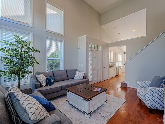 Absolutely stunning and well-maintained Mason condo! Come on in the front door to a spacious living room with a two-story ceiling and loaded with windows, giving you tons of natural light during the day! Living room also has a brand new door that walks out to the back yard! Beautiful hardwood floors and freshly-painted walls flow right into the updated, eat-in kitchen! Granite counters, tile backsplash, SS appliances, and vaulted ceilings! First floor primary suite with double vanity and walk-in shower! Newer grey carpet in the bedrooms and throughout the upper level! Large second bedroom upstairs with walk-in closet! Roomy loft space at the top of the stairs could easily be walled off for a third bedroom, or be used as a work/reading space, rec area, the options are endless! Two-car attached garage! Minutes from Kings Island, I-71, and right next to the golf course and tennis center! So much to love about this home! Schedule a showing today!