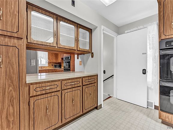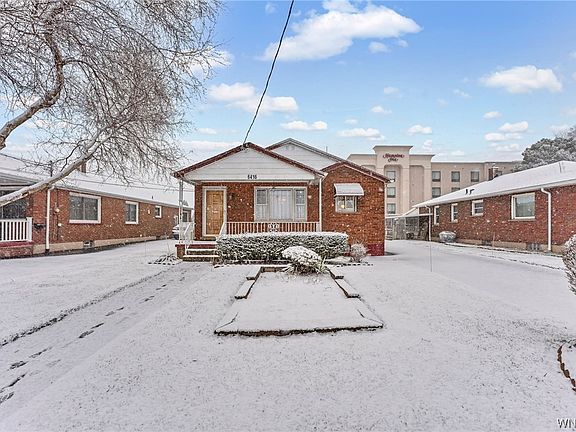 Welcome home ~ this lovingly maintained & well cared for brick ranch in Niagara Falls is a must see! This one owner home has several updates & gleams with pride; roof approx. 10 years old, AC '23, hot water tank approx. 4 years old, furnace approx. 10 years old. Beautiful flooring was installed in 2020 & can be found in the spacious living room, dining area & in the three nicely sized bedrooms. Completely remodeled modern bathroom with a walk-in shower is absolutely beautiful. Kitchen with a built in oven & cooktop & cabinet nook for extra storage. Partially finished basement is perfect for entertaining & offers so much space! Separate office/den area, a nicely remodeled full bathroom with a gorgeous walk-in shower (2020). Separate laundry/utility/storage area. First floor also offers pull down stairs leading to the attic, some new windows & newer side entry exterior doors. Huge detached 2-car garage was built in 2012 & blacktop driveway was also replaced at this time. This charming home  is situated on a dead-end street & adjacent to 66th Street School. Showings begin immediately, with all offers, if any due Feb 29, 2024 at 4pm.