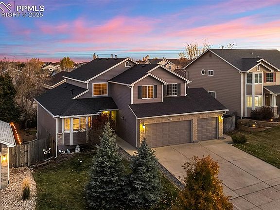 You will be picking your jaw off the perfectly refinished hardwood floors as you walk into this renovated, stunning home! Six bedroom, four bath, three car attached garage with an open floor plan, massive vaulted ceilings and main level primary bedroom suite. Fresh paint, refinished cabinetry, brand new matching hardware fixtures and lighting, newer stainless steel appliances, granite countertops, brand new carpet with upgraded pad and meticulously refinished hardwood floors have this home looking gorgeous! But don't worry, this home doesn't just have the looks, after all, it's what's on the inside that really counts. Rheem furnace and air conditioner professionally installed last year and water heater is only two years old. Fenced backyard with artificial turf, storage shed and brand-new professionally installed, no maintenance Trex deck! Finished basement includes a walk-out entrance, 3/4 bath and two bedrooms, one of which has capped plumbing ready for an easy wet bar or kitchenette sink install. All of this glory in the desirable Ridgeview at Stetson Hills neighborhood with easy access to schools, parks and everything the Powers corridor has to offer. Come take a look and feel what true pride of ownership means!