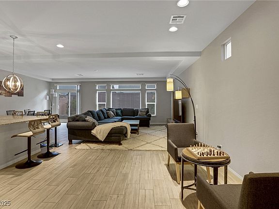 Welcome home to this gem located in the highly sought after and fast growing SW of Las Vegas! This 2018 built, 2-story modern home features 4 bedrooms and 3 baths with an open floor plan with upgraded wood-like tile flooring downstairs, and a bright & spacious living room. The gourmet kitchen boasts a gigantic island - great for entertaining, showcased with stylish pendant lighting, granite countertops & stainless steel appliances! You'll find carpet upstairs along with all 4 of the bedrooms, and the primary bedroom separate from the guest bedrooms for added privacy. You could even sleep in the large walk-in closet in the primary bedroom! Back yard features amazing brick pavers - perfect for a family gathering or entertaining. Conveniently located with easy access to I-215, near shopping, dining, entertainment and school! Furniture is also available for sale if desired. A Must See! Come check it out before it's gone!