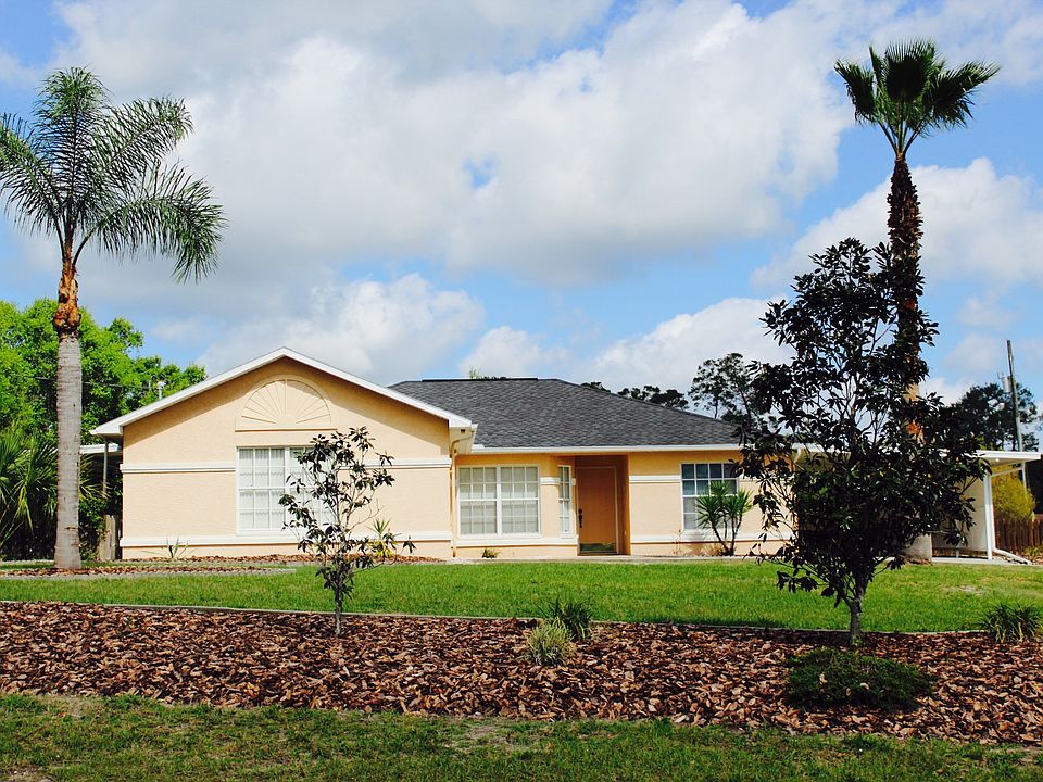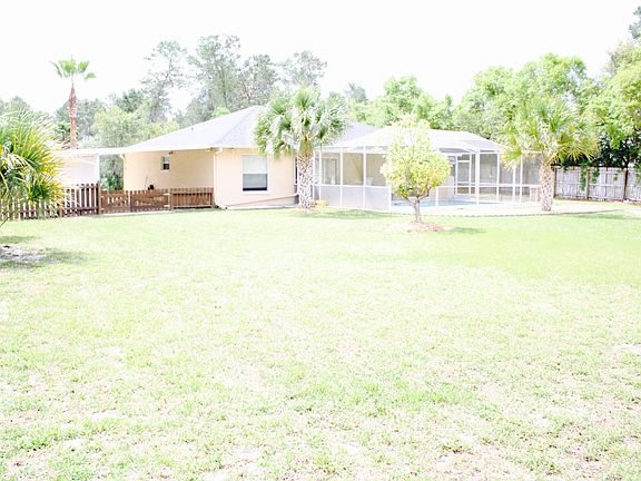 Beautiful Florida pool home on almost a half acre corner lot. This home is a 3 bedroom 2 bath split floor plan. The living room has a cathedral ceiling and opens up to a covered lanai with a solar heated pool and fenced yard. Also, off of the garage is another covered area that could be used to BBQ or for extra space for entertaining. There is a large laundry room with plenty of storage. The master suite offers a walk in closet and sliding glass doors that open up to the lanai. A separate 16x12 custom workshop is located in the back of the property for extra storage and a 16x13 carport perfect for extra parking. New Roof in 2012.