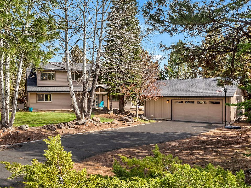 Enjoy the tranquility of Central Oregon's high desert landscape while enjoying the convenience & community of the friendly Tumalo Rim neighborhood. This large lot backs to common space, creating ultimate privacy & the feeling of a large acreage property without the maintenance. Fully remodeled home features primary suite w/ attached office/flex space on main level. Upstairs there is a spacious loft divided into 2 usable flex spaces, in addition to the two guest rooms separated by a full bath. Vaulted family room flows seamlessly into the dining area and remodeled kitchen. New exterior paint & roof only two years old. Detached oversized 2-car garage is finished, heated, and currently used as a bonus space/game room. Wireless fence installed around the perimeter for pet containment! Landscaped front & backyards with custom treehouse for creating magical memories. Relax on the large back deck while enjoying the sunrise and intermingle with the local wildlife.