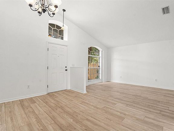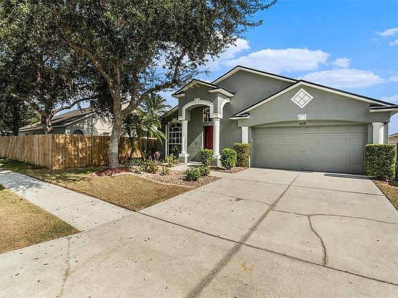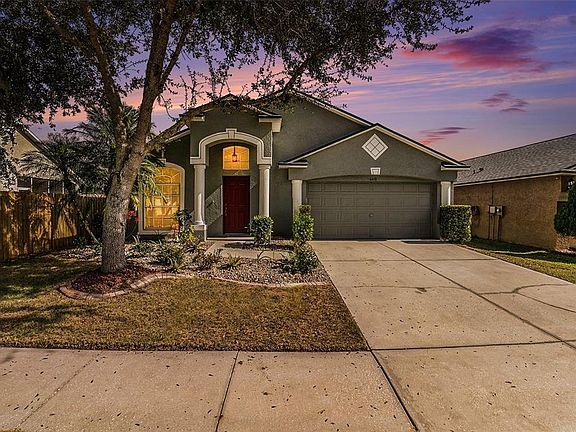 Step into this beautiful 3-bedroom, 2-bath home offering 1,440 sq ft of stylish, low-maintenance living. The freshly painted interior—doors, baseboards, and ceilings included—creates a clean, modern feel from the moment you enter. You’ll love the tall ceilings, open kitchen, and modern gray cabinetry, complemented by a stainless steel refrigerator and brand-new waterproof laminate flooring that flows seamlessly throughout the home. Enjoy peace of mind with a 2023 roof and 2017 A/C, plus a fully fenced backyard perfect for pets, play, or outdoor entertaining. A welcoming living and dining room greet you upon entry, enhanced by vaulted ceilings that create an open, airy feel. From there, flow seamlessly into the open kitchen, which offers space for a small bistro table or additional pantry storage. Access the laundry room and 2-car garage directly from the kitchen, or continue into the family room at the heart of the home. Sliding glass doors lead to the spacious backyard, and the split bedroom floorplan provides added privacy, with a long walk-in closet in the primary suite. Located in a low-fee HOA community in the heart of Wesley Chapel, this home is just minutes from popular shopping, dining, and great restaurants. Many updates are already complete, with just enough opportunity left for your personal touch to finish the home to your taste. A wonderful blend of comfort, style, and potential...ready to make your vision a reality.