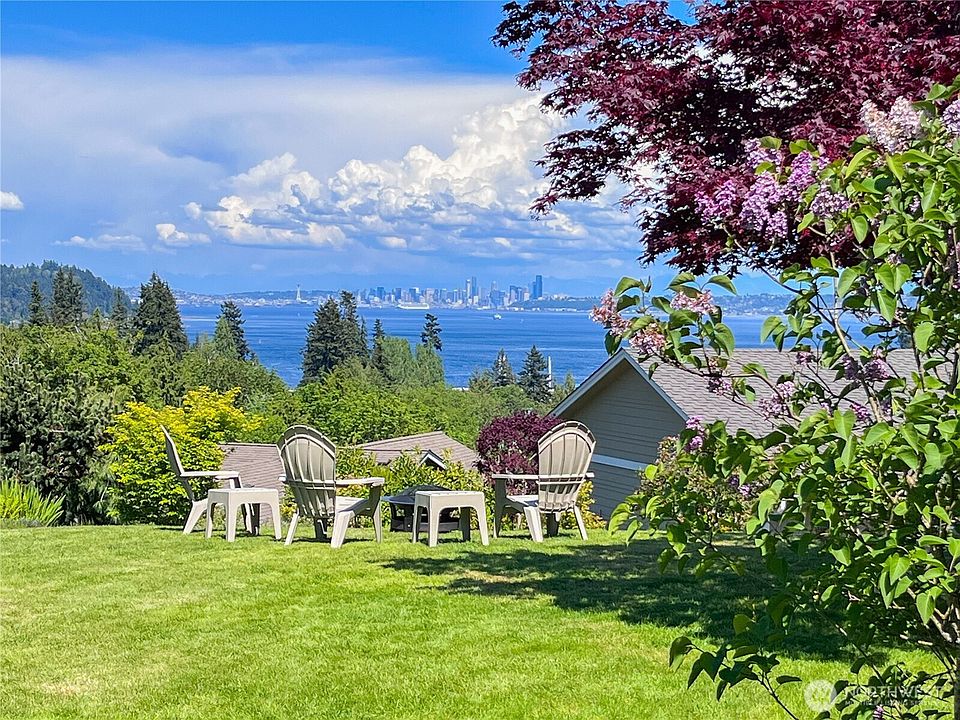 Expansive day-to-night views highlight this open-concept 1-story home with just under 2,000 sq ft. Enjoy stunning vistas of the Sound, Seattle skyline, Bainbridge, Blake Island, Mt. Rainier, Vashon, & the Cascades from the vaulted living room or the full-length deck ideal for entertaining or quiet mornings. The kitchen opens to a casual family room with fireplace & dining area. Home features 3 bedrooms, 2 baths, plus a versatile flex room currently used as an office. Nestled on a quiet dead-end street with mature landscaping, it’s a 5-min walk to the beach, dock, coffee shop, restaurants, & library, & only 10-min drive to the Southworth ferry/fast ferry. Updates include roof & siding (2012), A/C (2023), & newer fridge, stove, & dishwasher.