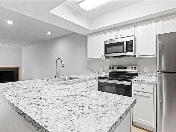 Prime Location in Northwest Columbus; Dublin Schools! Professionally remodeled; new kitchen with ss appliances, new flooring (entry, kitchen, baths and bedrooms), new baths. Decorative fireplace. Walk in the front door to an open concept living area and a fantastic bedroom/bath layout; 2 large bedrooms with attached walk-in closets separated by the full bath. Step out back to a serene patio. One designated carport parking space and plenty of guest parking. The community boasts a pool, work out facility and lots of greens space with a walking trail.