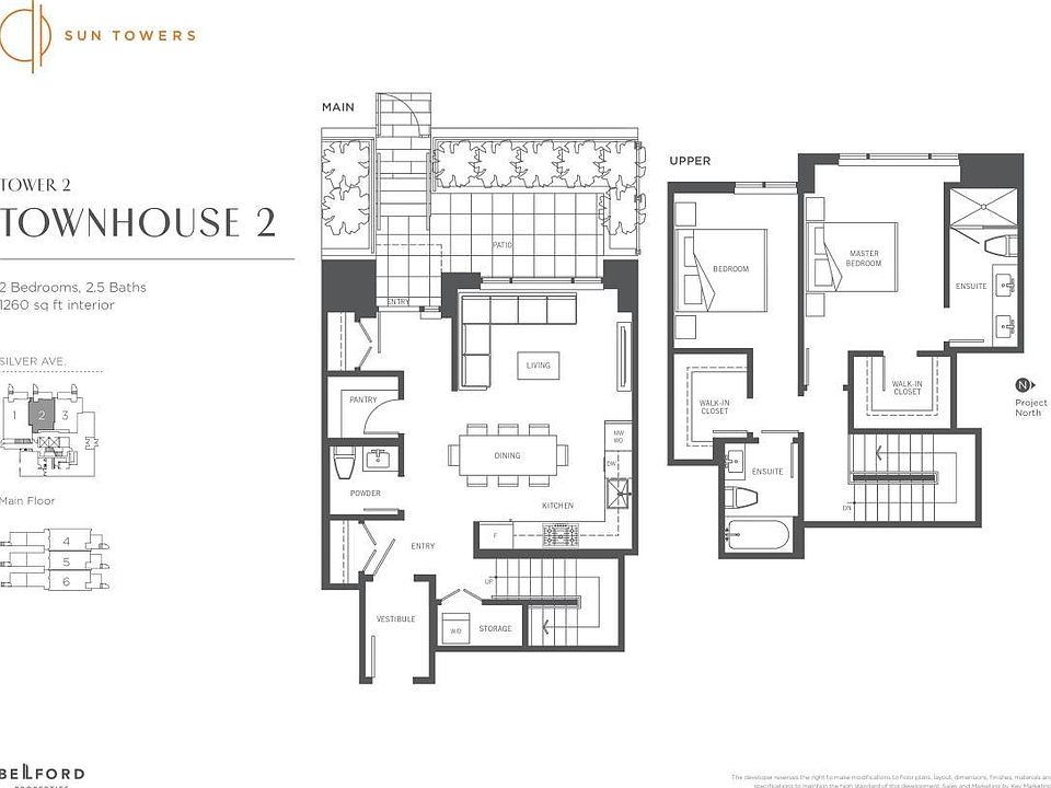 Welcome to Sun Tower 2 by Belford Properties, in the heart of Metrotown, Burnaby. This 2-level townhome features 2 beds, 2.5 baths, and a private front yard entrance. Enjoy in-home heating & A/C, bright interiors, and a functional layout perfect for family living. The gourmet kitchen boasts a quartz island with waterfall edge, full marble slab backsplash, and custom German Nobilia cabinetry with integrated Bosch appliances. Includes 2 parking and 1 locker. Residents enjoy exclusive access to the 24,000 sq.ft. Solaris Club with gym, pool, hot tub, and more. Steps to SkyTrain, Metrotown Mall, and parks.