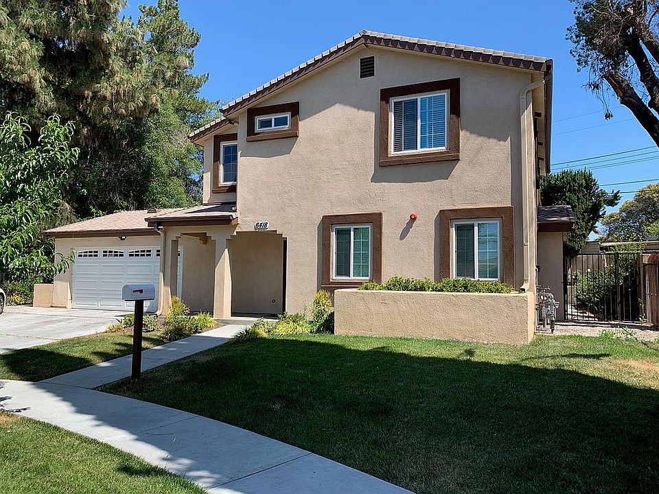Reseda Premier listing! Located on a charming street in Reseda resides a Timeless property with elegant finishes and all the comforts you look for in a Forever type of home. Throughout this prestigious retreat you will find details such as baseboard and crown moldings, soaring smooth ceilings equipped with recessed lighting, immaculate flooring that includes tile and wood, a beautifully crafted staircase, as well as French windows and a laundry area located on the second floor. Upon entering this home, you are greeted with an open floor-plan of 4 bedrooms, 3 bathrooms and 2,026-SqFt of impeccable living space. There is a formal living room with a lovely street view and a nice gourmet kitchen with stainless steel appliances, sleek counter-tops, high end cabinetry and even a breakfast bar, great for bar stool seating. Bathrooms are modern and beautifully designed, while the bedrooms are spacious offering large mirrored closets. Outside there is a very well-maintained back yard with stunning landscaping where you can unwind or entertain guests. There is an abundance of greenery, fresh flowers, ample amount of much needed privacy and a large open patio, perfect for outdoor seating.