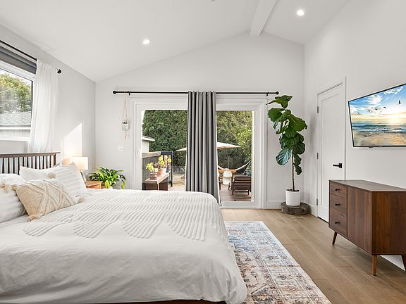 Step outside and you'll find the ultimate backyard setup: a big outdoor table for dinners under the stars, comfy seating, a BBQ for grilling, and even a lemon tree for that California touch. Off the kitchen, there's also a small porch with a fire pit! Great for evening conversations.